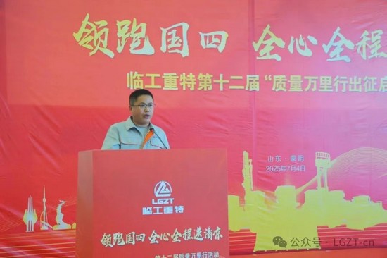 仲夏蝉鸣起,服务正当时!7 月 4 日上午,临工重特装配车间内,公司领导班子成员与员工代表齐聚一堂,共同见证这场服务盛会启幕,也标志着临工重特第十二届"质量万里行 — 领跑国四,全心全程送清凉" 服务活动正式启航。临工重特董事长朱巍、总经理李述华出席活动并致辞。