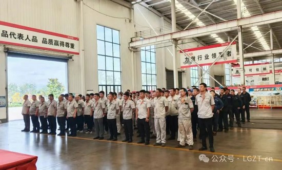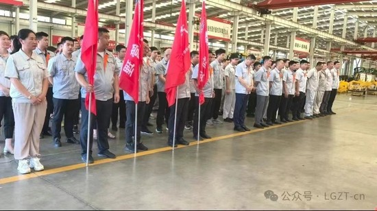 仪式现场,四支走访小队队长身着统一工装,精神抖擞。公司董事长郑重将旗帜授予各队队长——这不仅是责任的交付,更是临工重特“以客户为中心”信念的传承。接过旗帜,队长们奋力挥舞,向全场员工致意。随后,陈刚福作为代表发言,铿锵有力地表达了完成“质量万里行”走访任务的坚定信心。